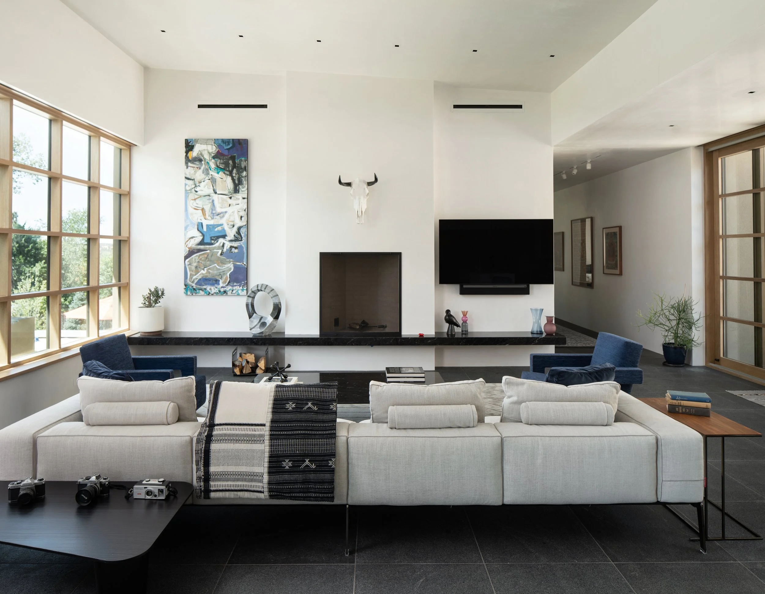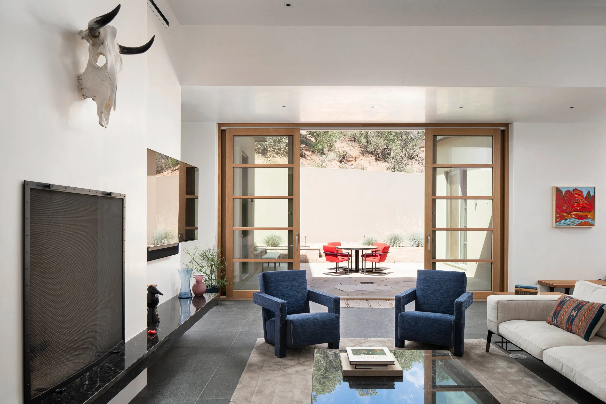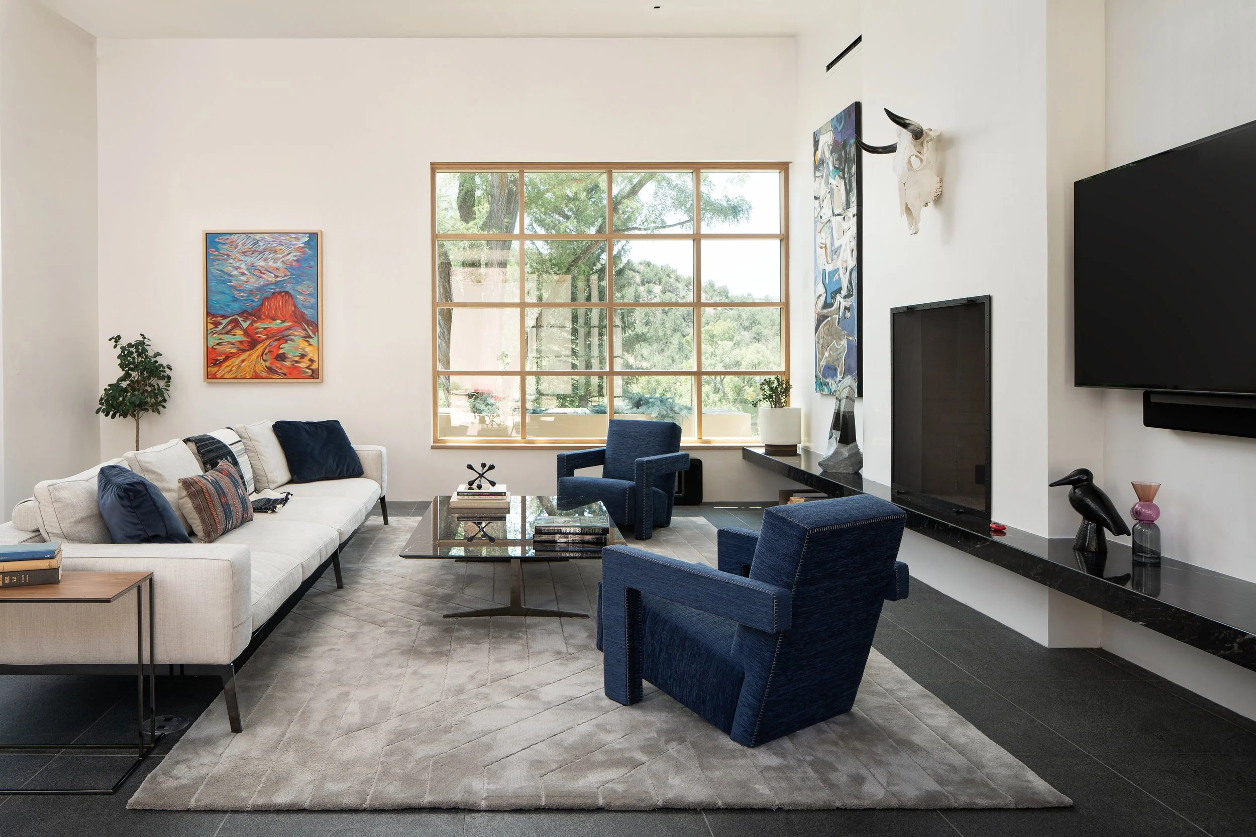 This furnishings and art project for a primary residence in New Mexico was designed for a tech entrepreneur seeking a quieter lifestyle and a place to truly unplug. With meditation and restoration at the center, the work focused on shaping a peaceful environment through balance and thoughtful layering rather than architectural change.