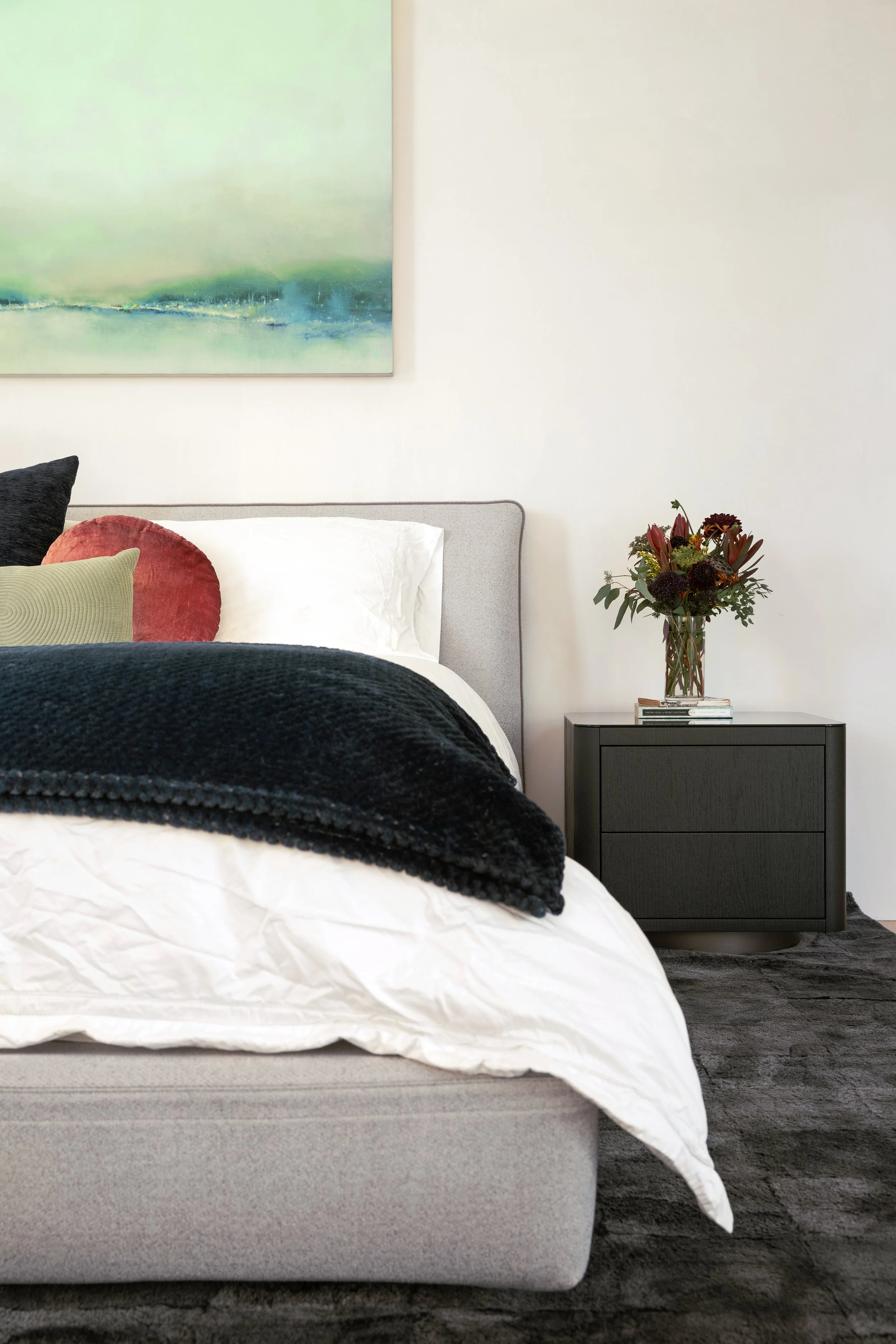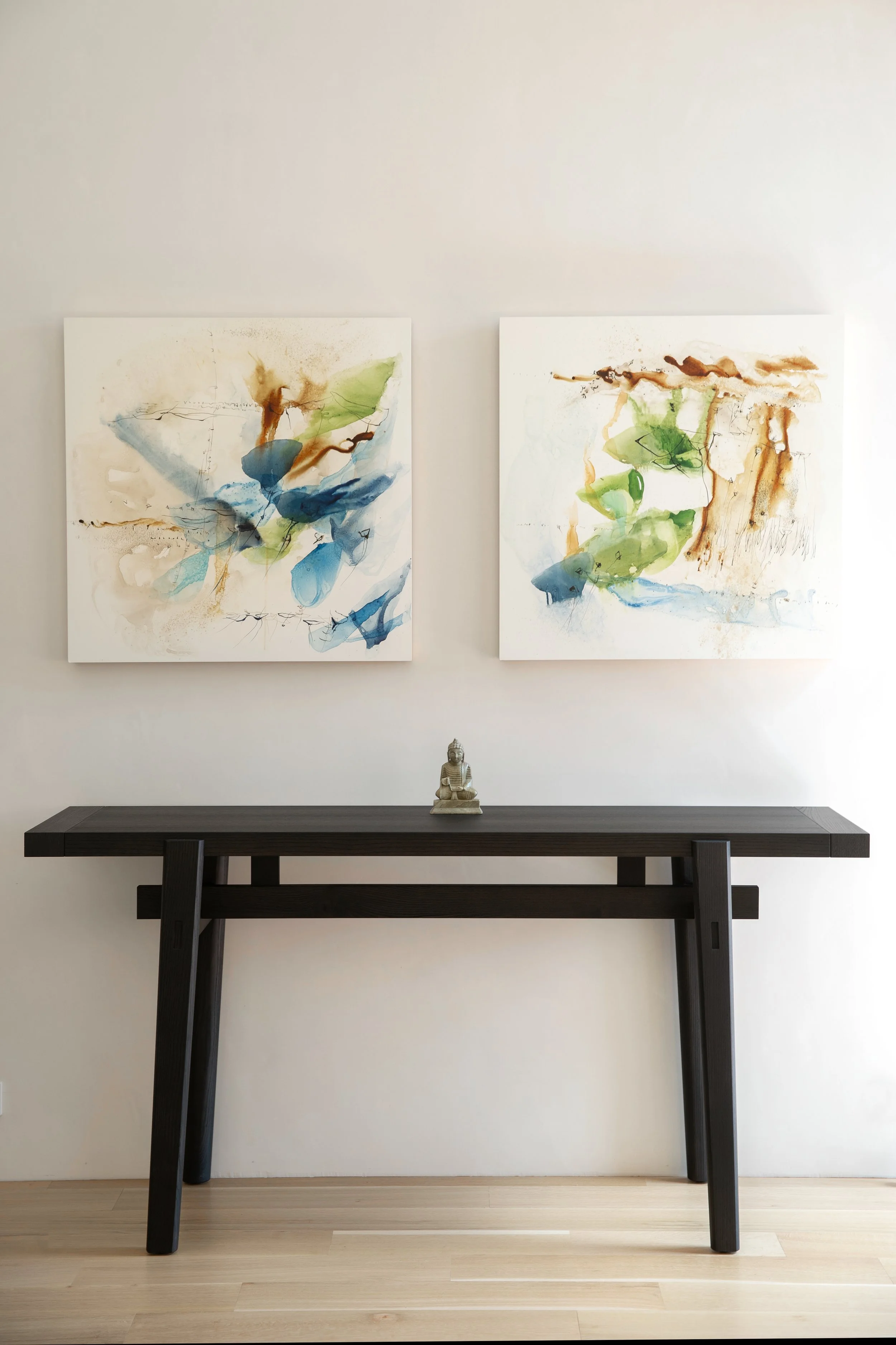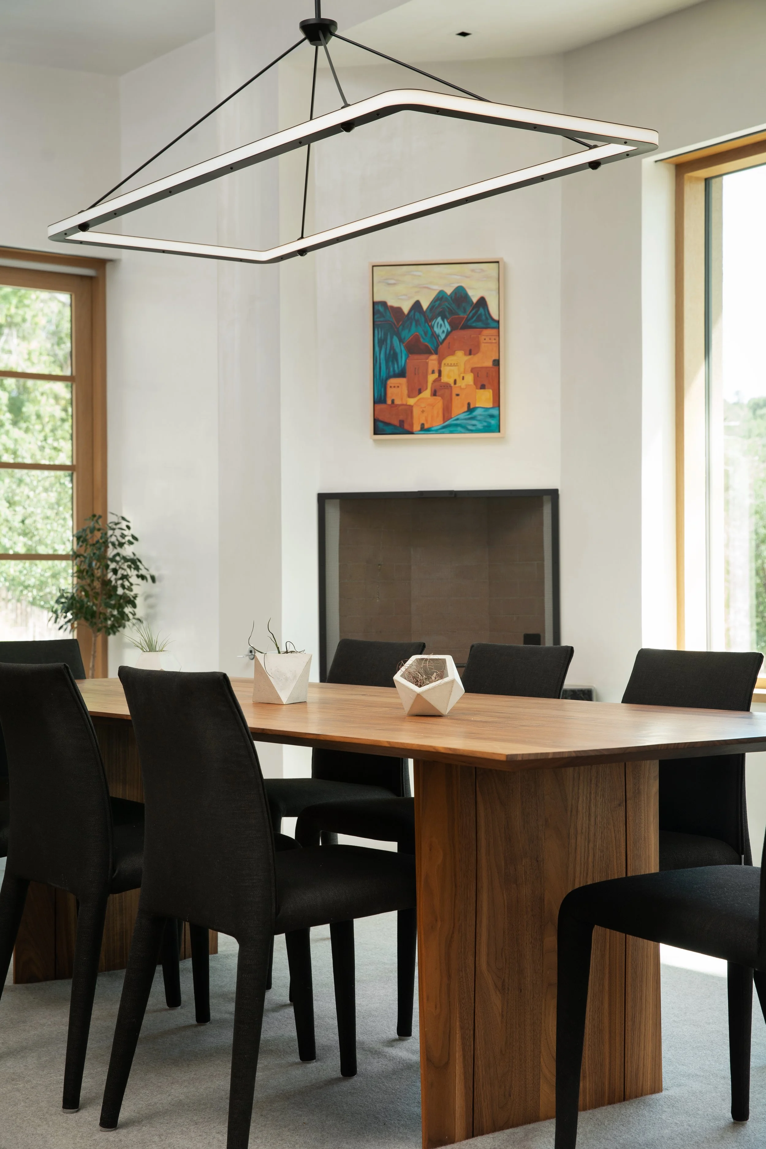 We curated a mix of existing and newly selected furniture and art, honoring what already held meaning while introducing pieces that reflect a sense of place. A neutral foundation allows the home to feel light, while art adds depth and expression. The result is a home that feels intentional, offering space to slow down, reflect, and reset.